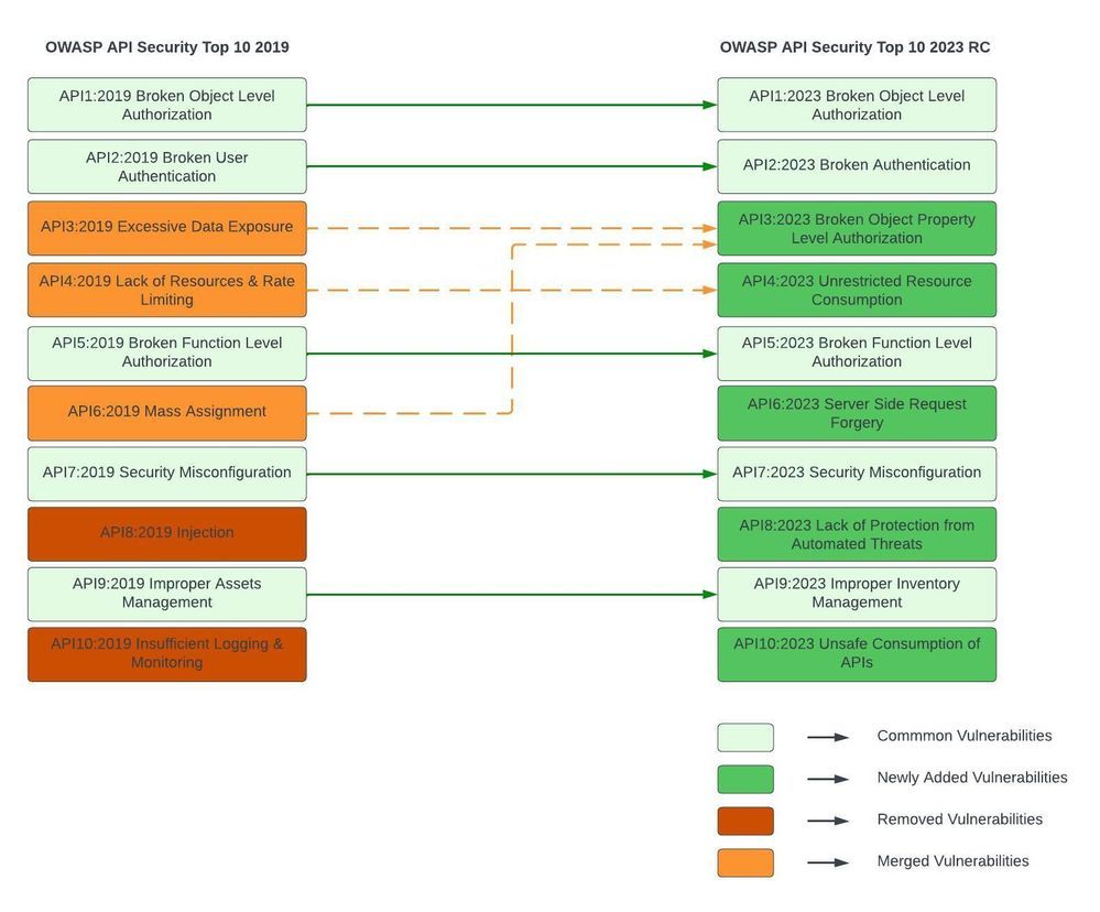 No OWSAP TOP 10 2023 RC foi adicionado a vulnerabilidade Broken Object Property Level Authorization que engloba Excessive Data Exposure e Mass Assignment. Veja na imagem abaixo: