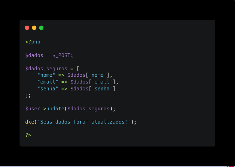 Na maioria dos códigos, o Mass Assignment ocorre quando obtemos os dados informados pelo usuário e enviamos diretamente para o banco de dados.