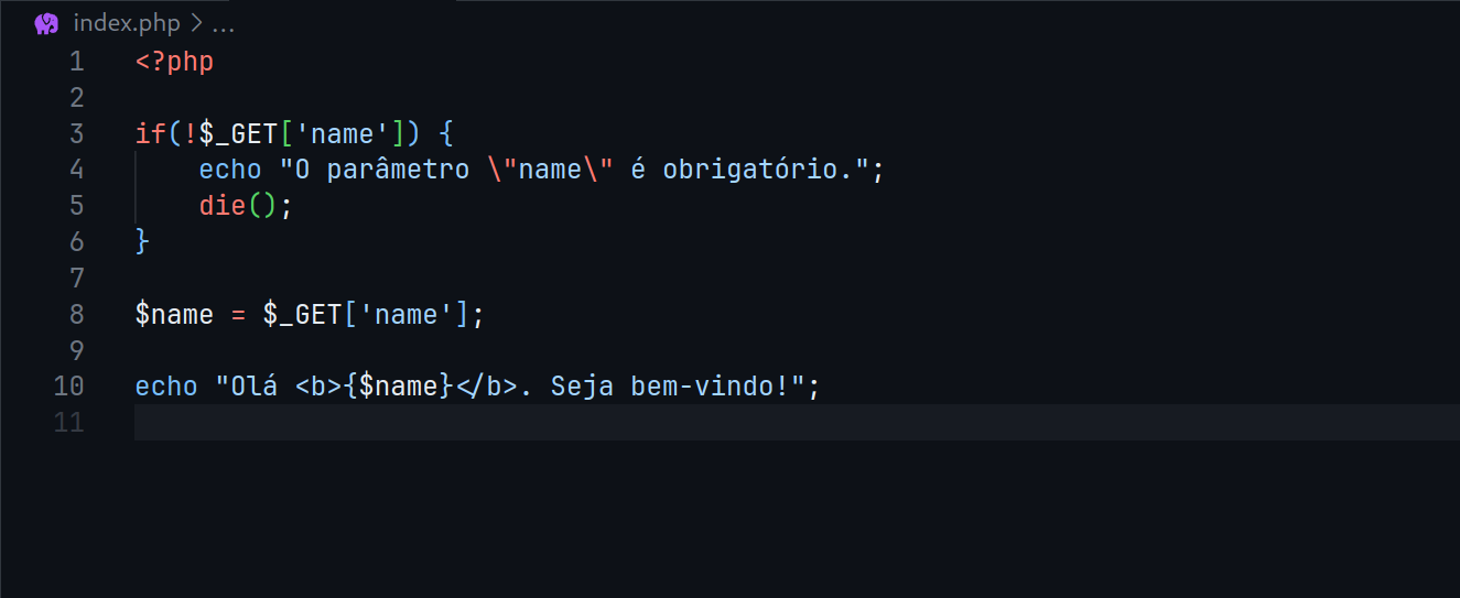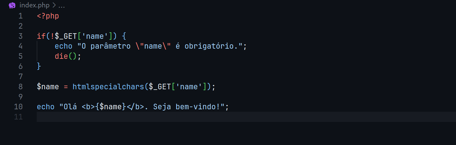 Veja um exemplo de um código PHP vulnerável a XSS Reflected: