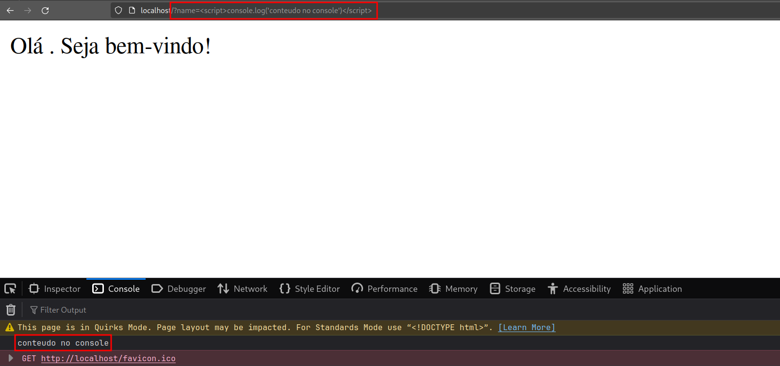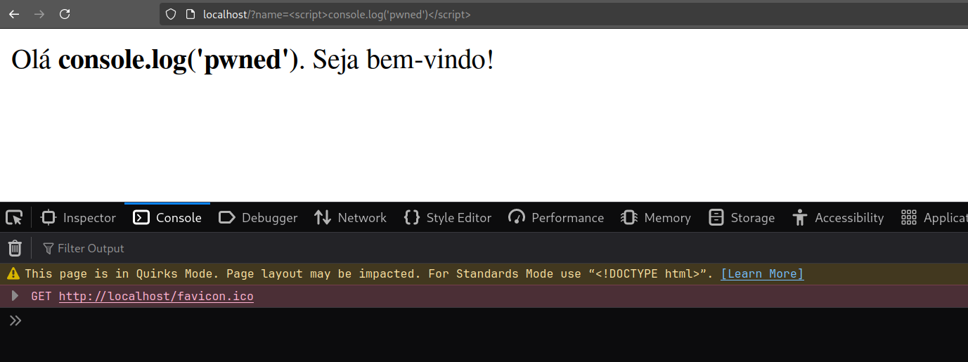 Como vimos anteriormente, esse tipo de XSS ocorre quando a aplicação retorna uma página HTML com o input malicioso contido no conteúdo dela.