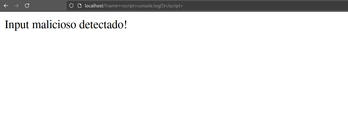 Se enviarmos um código JavaScript no parâmetro "name", vemos que a aplicação identifica o ataque: