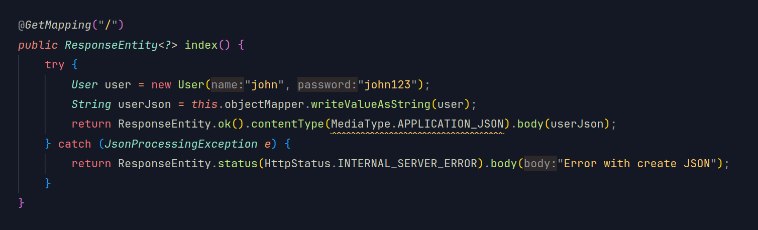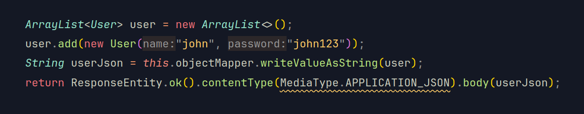 Esse treicho de código resulta em um JSON com as propriedades do objeto User: