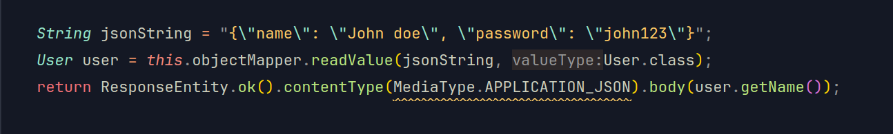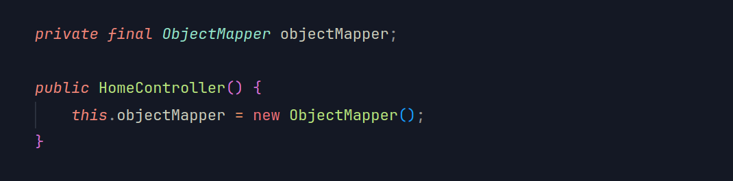 Detalhe importante: Na imagem abaixo, contém o código responsável pela declaração da variável "this.objectMapper":