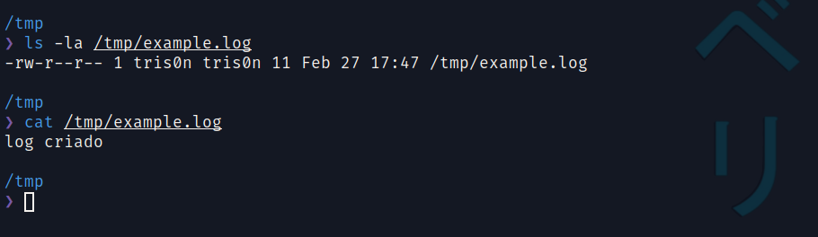 Listando e lendo o arquivo "/tmp/example.log", conseguimos obter o output do comando "id":