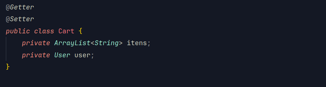 Na imagem abaixo, vemos uma classe que é responsável pelo carrinho de compras do usuário:
